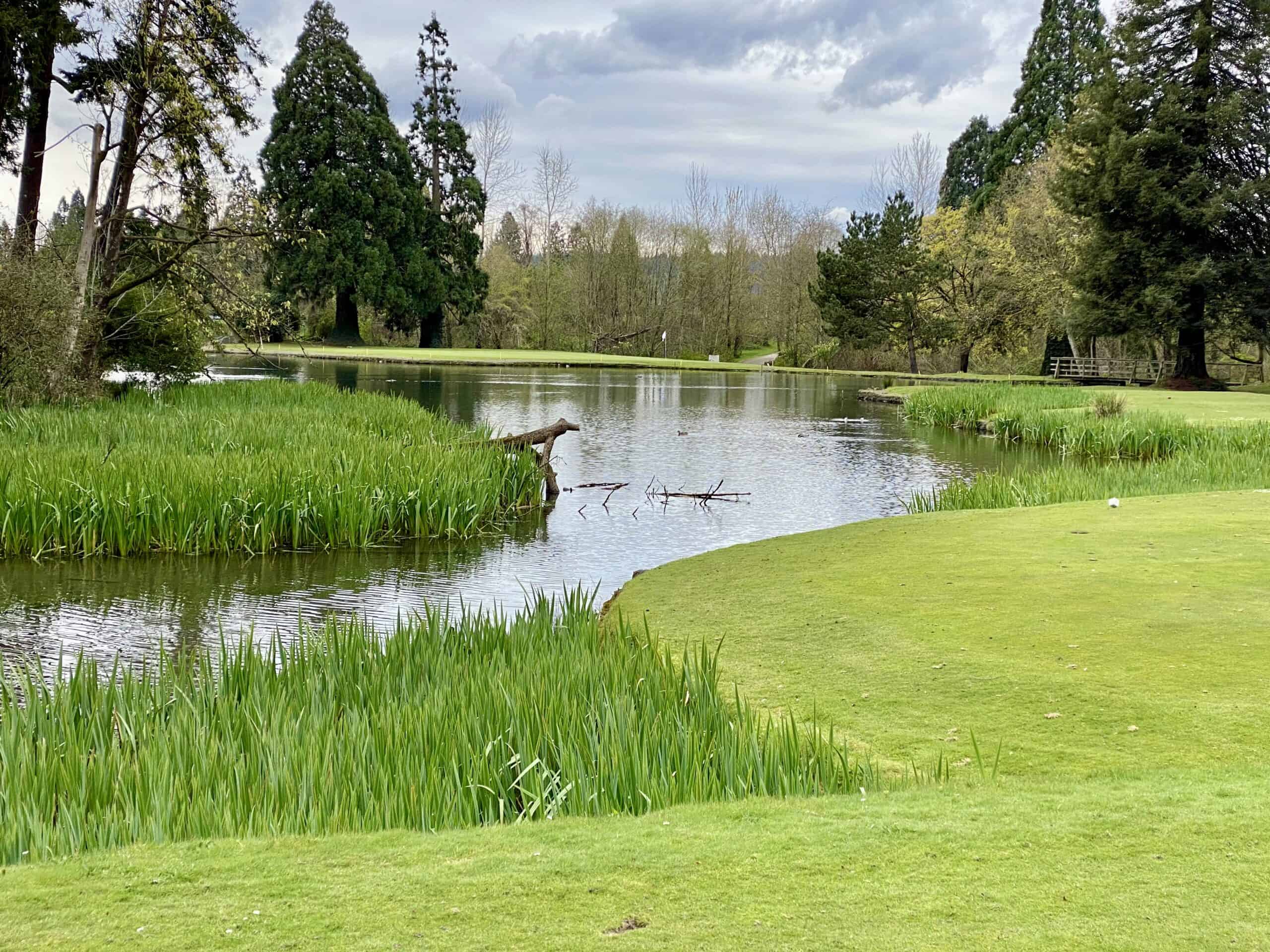 After another good looking, yet short par-4 10th , things become a bit more challenging on the back nine. Holes like 11, 13 and 16 will play much easier for you on your second time around the course. After viewing these holes in their entirety you will be able to better plan your strategy off the tee. The par-5 13th specifically calls for a layup of 200-220 yards depending on your choice of tee box. The two par-3’s on the back nine are the most scenic holes on the course. Both holes have gorgeous views of the Crystal Springs Lake shared by the golf course and the Rhododendron Test Gardens. Although both holes have forced carries over water, you may find that these two par 3’s are much more scoreable than those on the front nine. There are many enjoyable holes with features like the lake and Johnson Creek on the back nine, but staying out of these natural hazards off the tee will help you avoid frustration and allow you to take advantage of simple approach shots to large greens during your back nine.